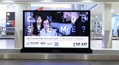 Digital screens and billboards across Sydney, Melbourne, and Perth airports will display the campaign throughout November, featuring messages that remind travellers “If you suspect it, report it.” QR codes will link to information and videos showing how to identify potential trafficking situations.
